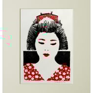 This is an original, hand carved and hand-pressed print. Two blocks, one for each colour are carved and inked separately. This completely manual process means that there will be slight variations between prints, making each one unique; however the photos shown here are a good example of the print you will receive.