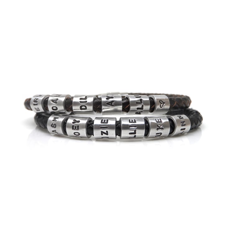 To order the Personalised Leather Bracelet with Six Hand Stamped Rings, simply click the "Choose Options" button above and enter your personalisation details along with selecting your bracelet colour and length.