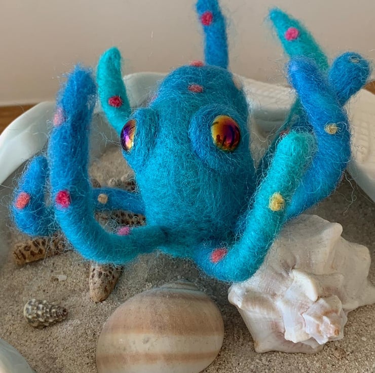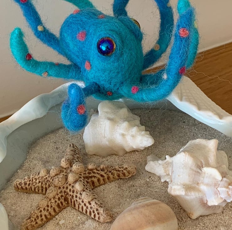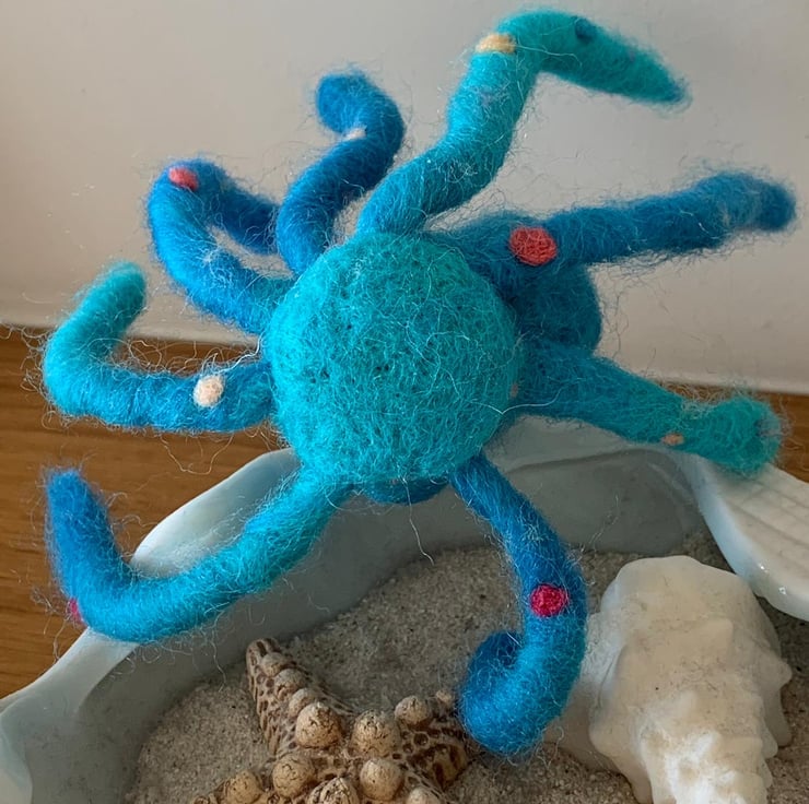 Cute Needle Felted Handmade Octopus with moveable tentacles