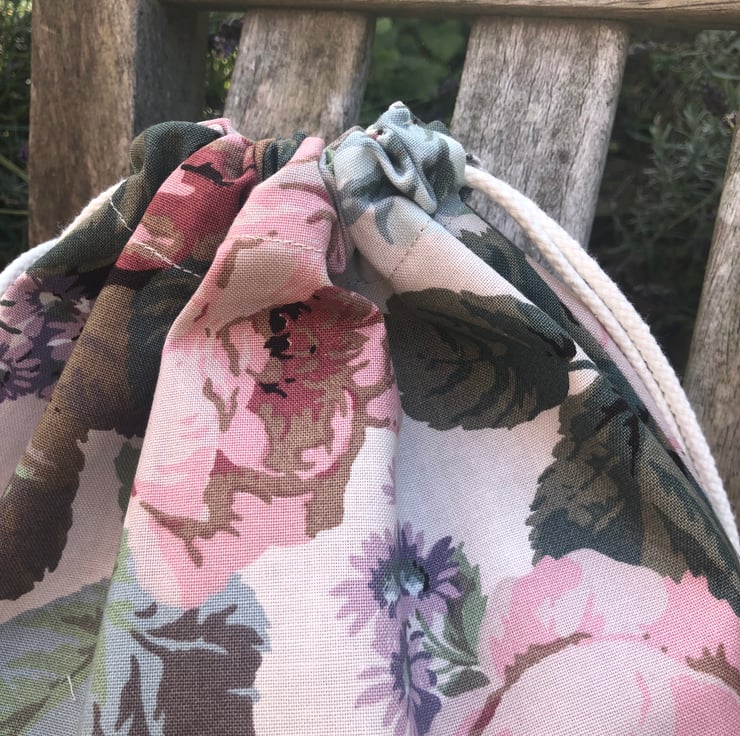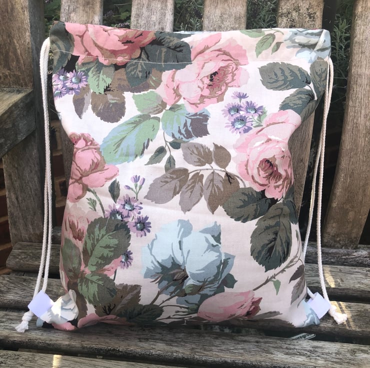Pretty Sanderson cotton drawstring bag perfect for kids’ PE kits or going to the gym. There’s room for trainers, t-shirt and shorts. The print is ‘Chelsea’ and it’s a lovely vintage floral.