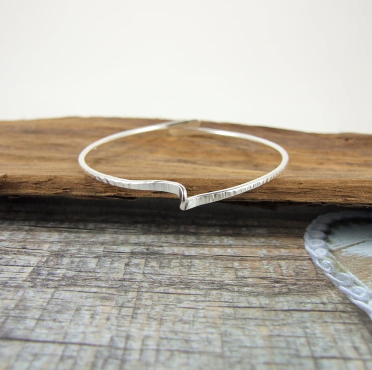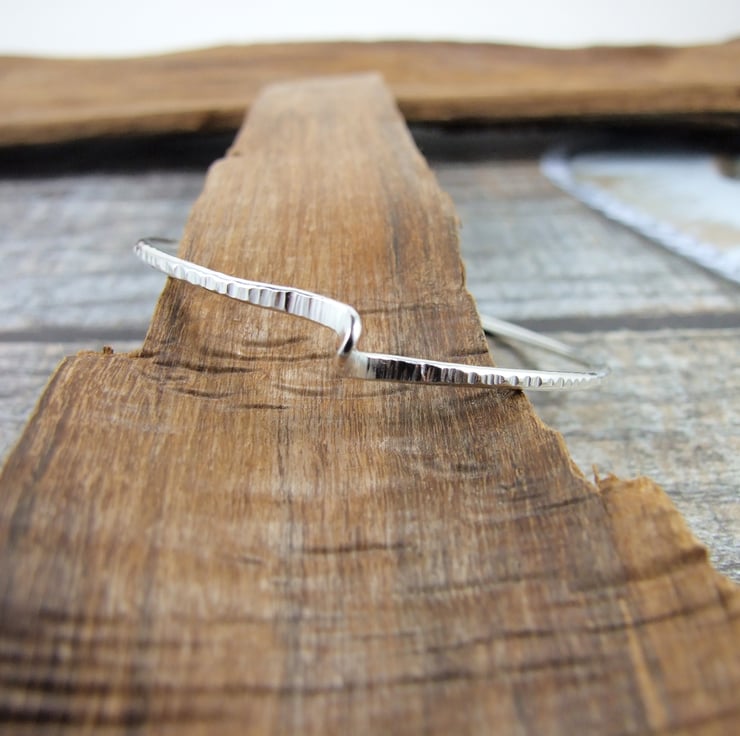 Sterling Silver Hand Forged Line Textured, adjustable fit wrap style with a twist to add interest, handmade to order please allow 2-3 days for me to make your bangle.