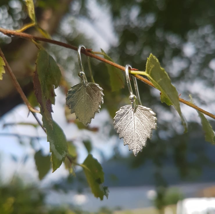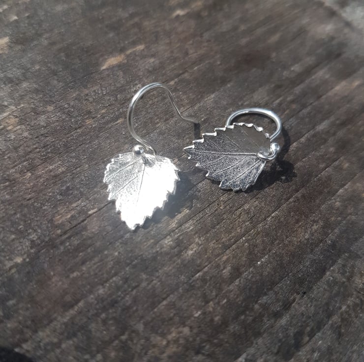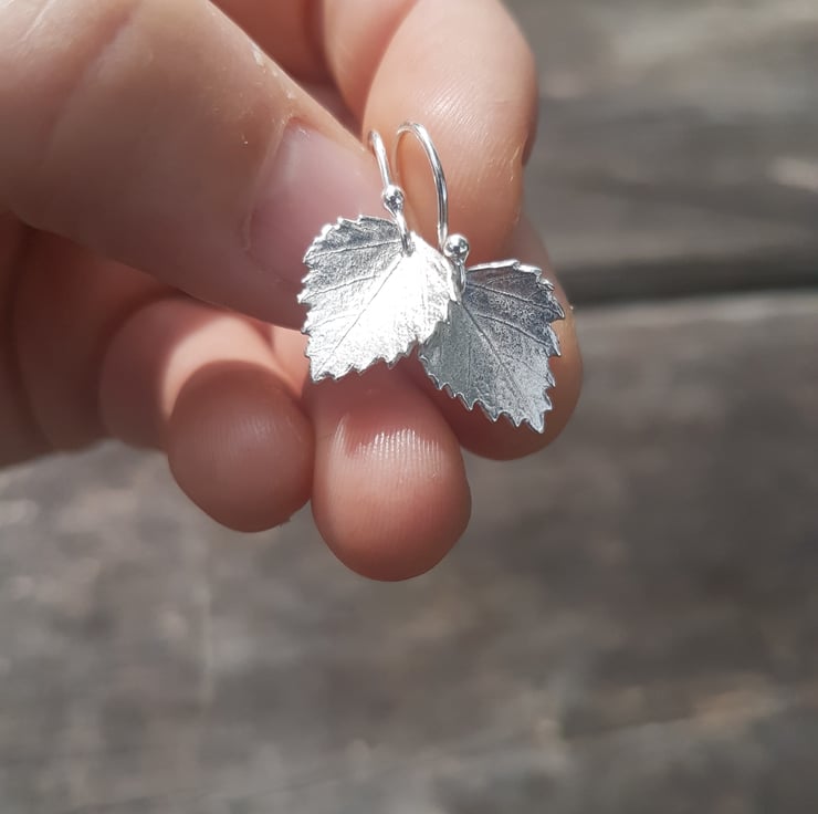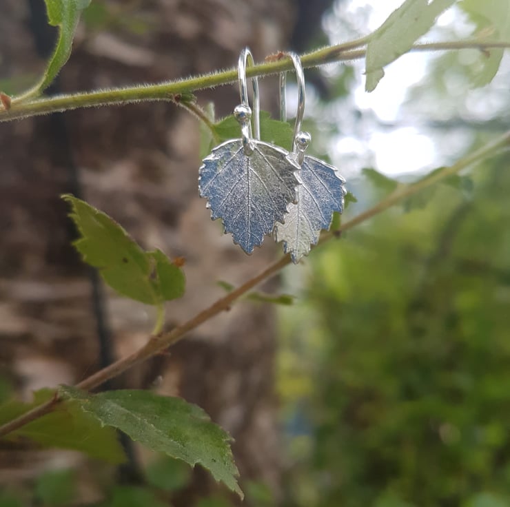 These pretty little earrings are made from fine silver and hang from sterling silver ear wires.
