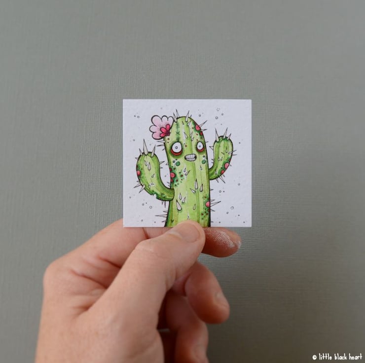 this original artwork measures exactly 2 inch x 2 inch.