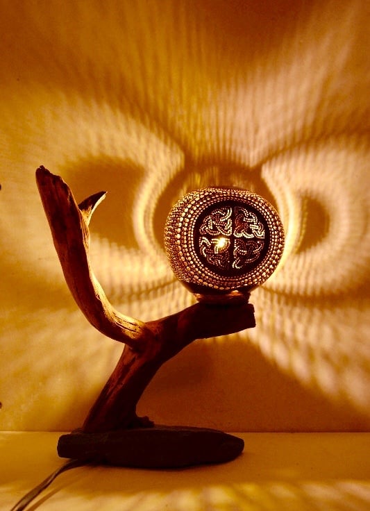 Celtic knot Coconut, wood and stone handmade lamp