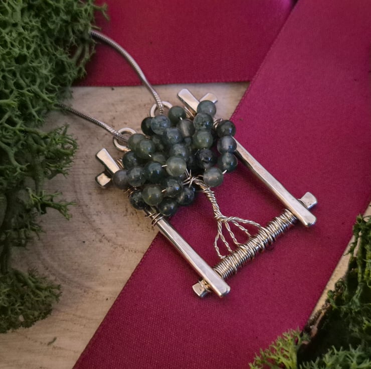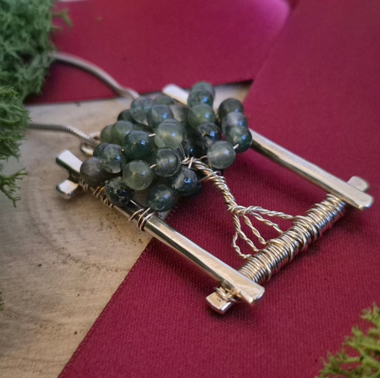 Inspired by British wildlife, flora and fauna, and the sense of peace that it brings me, I created this tree of life pendant to bring that feeling to others. Moss agate is a beautiful stone which is thought to help balance emotions and promote positivity.