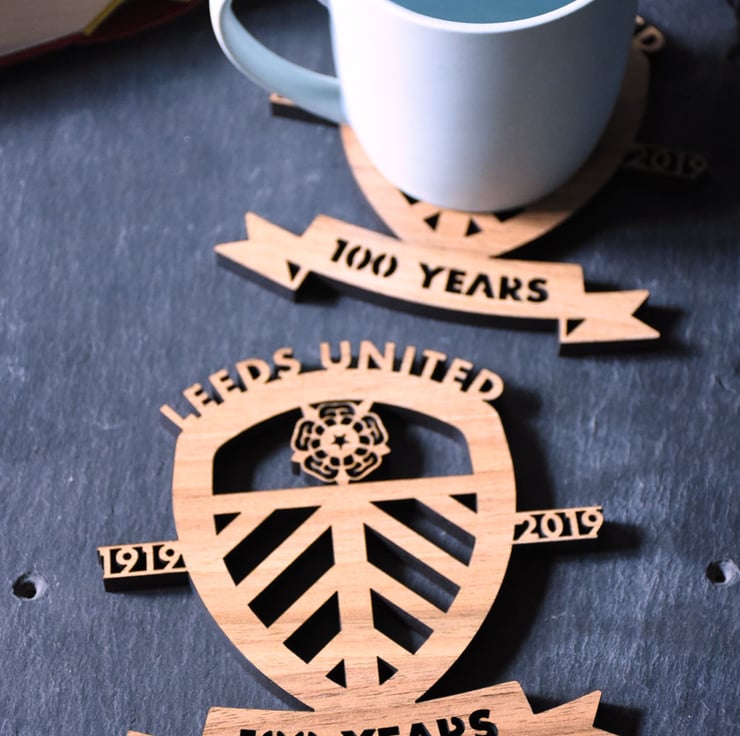 These Leeds United Centenary coasters are constructed from a high quality walnut veneered mdf.