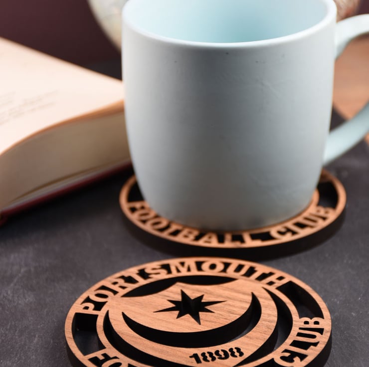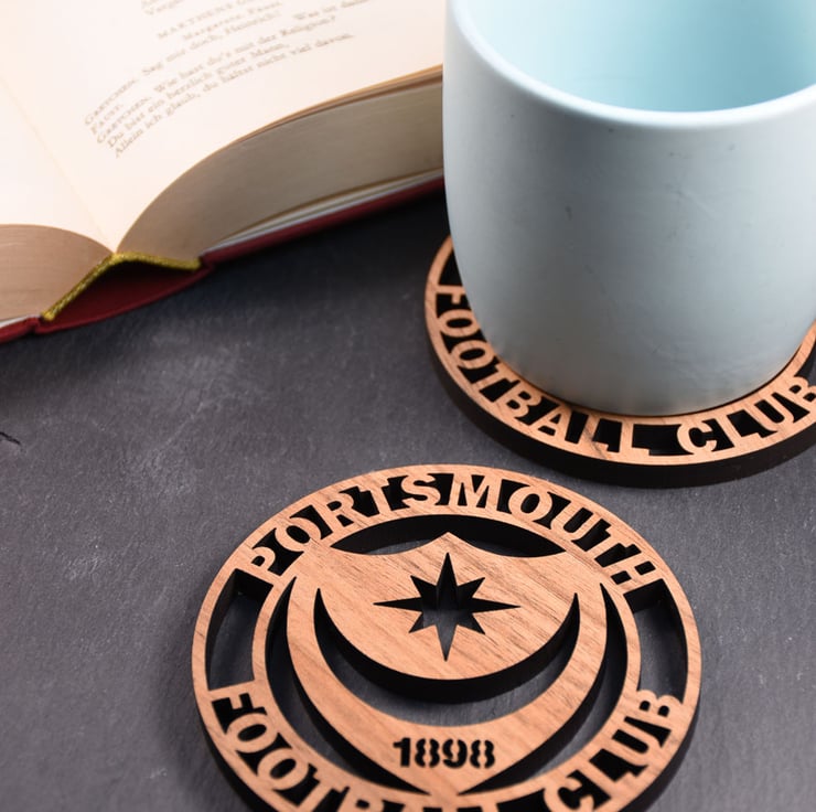 These Portsmouth FC coasters are constructed from a high quality walnut veneered mdf.