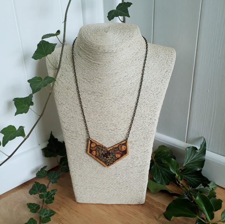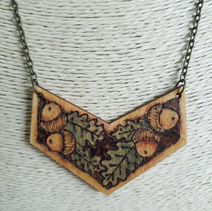Pyrography acorn & oak leaf pendant