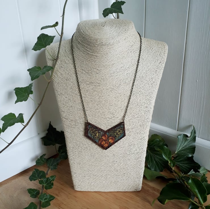 Pyrography acorn & oak leaf pendant