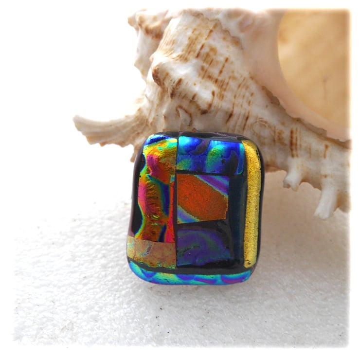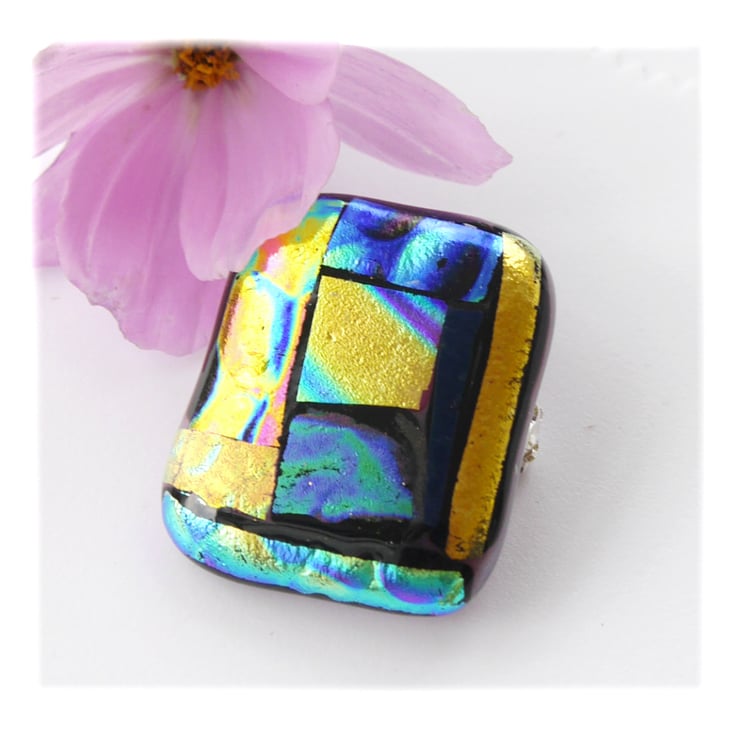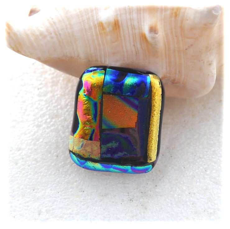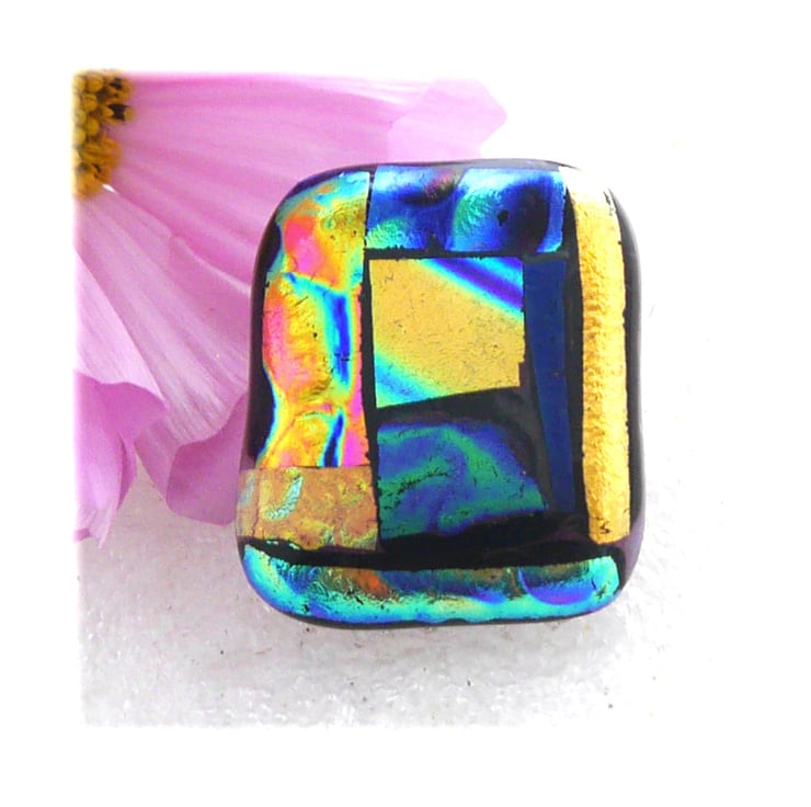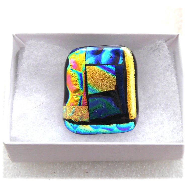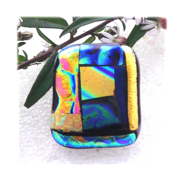 The dichroic glass cabochon for this brooch was handmade, by me, with love.