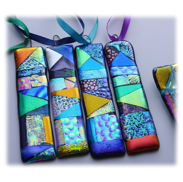 I first of all used this concept of patchwork and dichroic glass in my 8cm trinket dishes and loved the result so much I have expanded the range to these suncatchers.