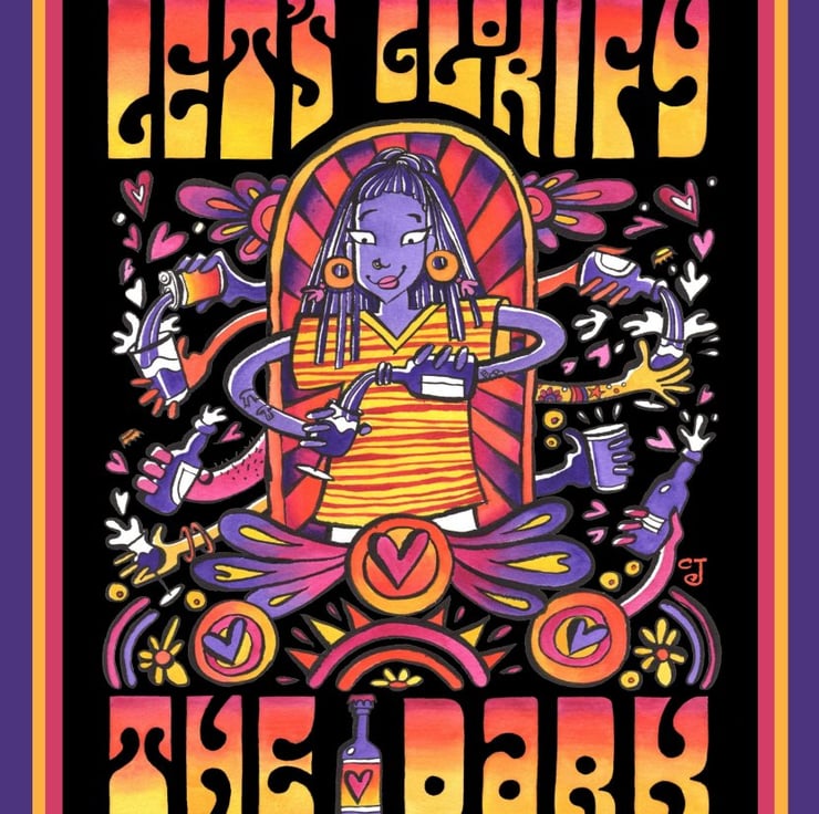 My chosen subject was Alex Sewell, founder of the Black Malt Bottle Share Club. I wanted to show the fun and inclusivity of bottle sharing – plus it was an excuse to explore a funky colour palette and try out some groovy psychedelic lettering.