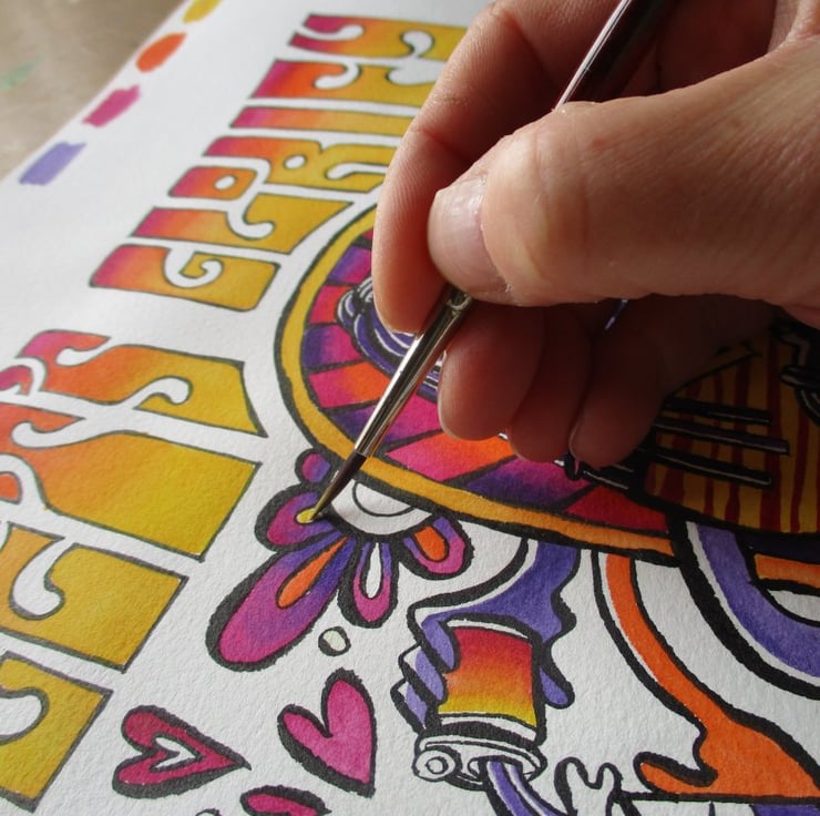 Please note: this item is a print of an original. The photo of me painting it is to show the process of making the original. As you can see, this is just one of three A3 Poster prints in my shop.
