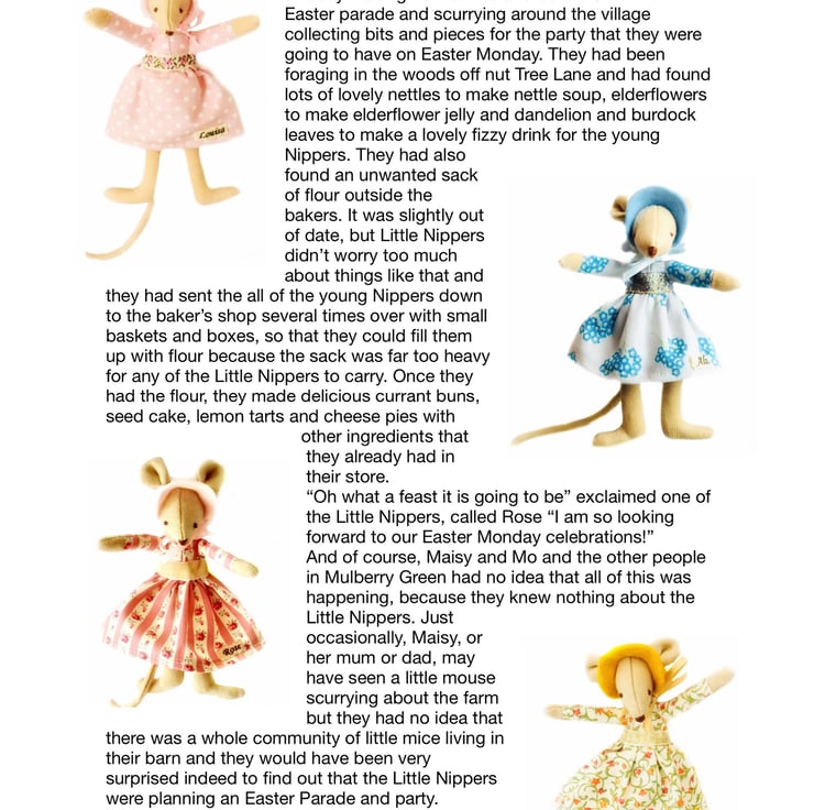 Little Nippers are a community of little mice, who live in the barn at Mulberry Farm. They are sometimes very hard to spot - but they are always there. Don't forget, next time you are out, keep your eyes open and you may just see a Little Nipper scurrying about.