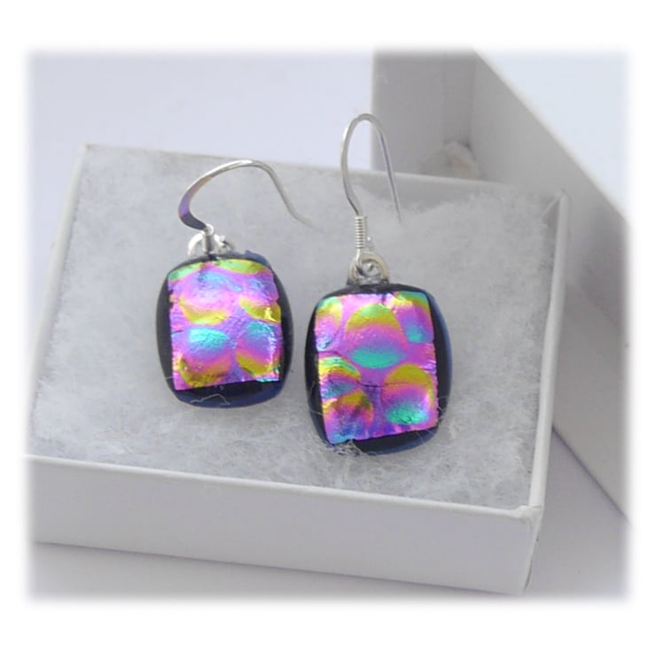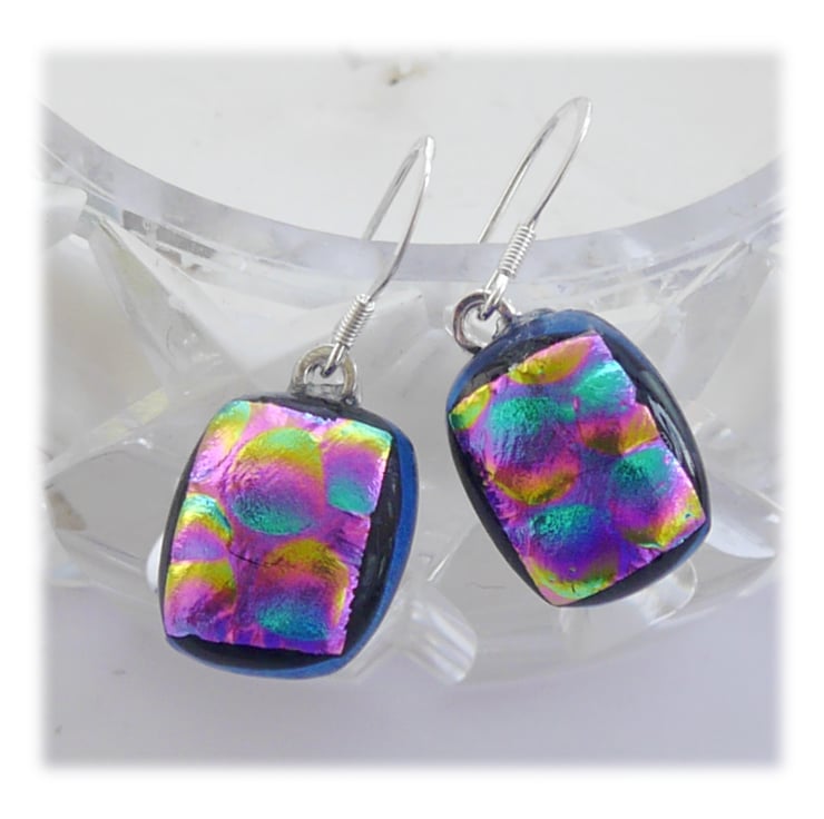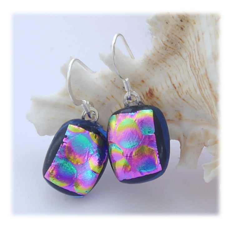 The dichroic glass cabochons for these earrings were handmade, by me, with love.