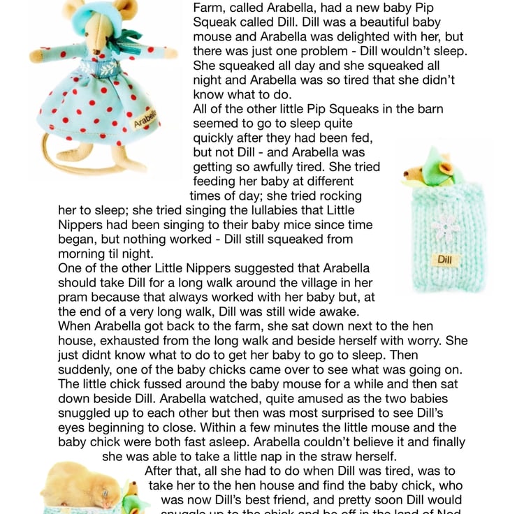 Little Nippers are a community of little mice, who live in the barn at Mulberry Farm. They are sometimes very hard to spot - but they are always there. Don't forget, next time you are out, keep your eyes open and you may just see a Little Nipper scurrying about.