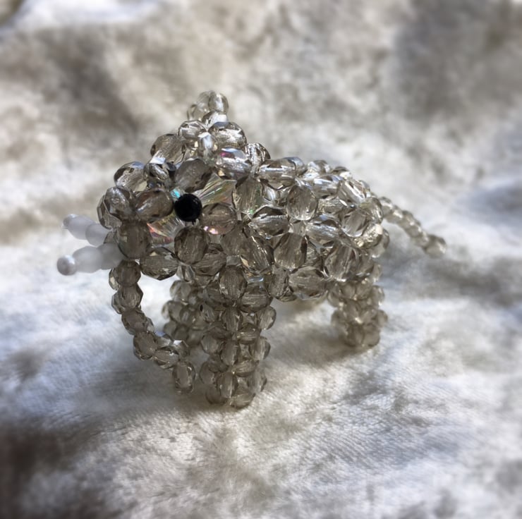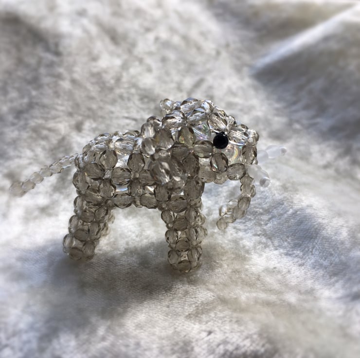 The elephant is the one of popular animals on the earth and this is the most popular one in my beaded animals. I made him with Czech glass beads that make him cute and shiny. The beads are used over 250 pieces. It is quite impressive!!! You would love him if you saw him once!!