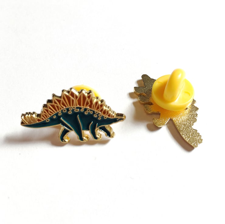 A stegosaurus enamel pin, perfect to decorate your favourite coat, jumper or bag.