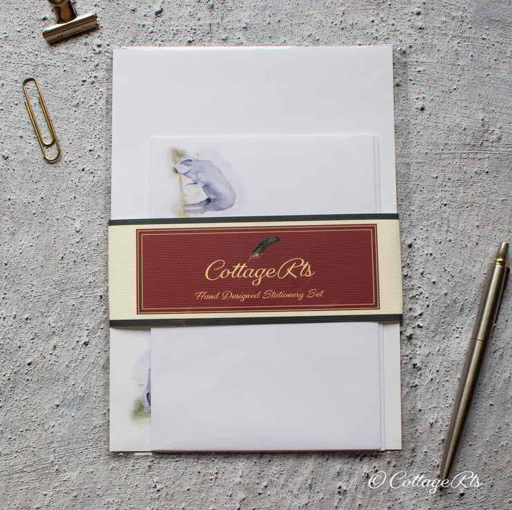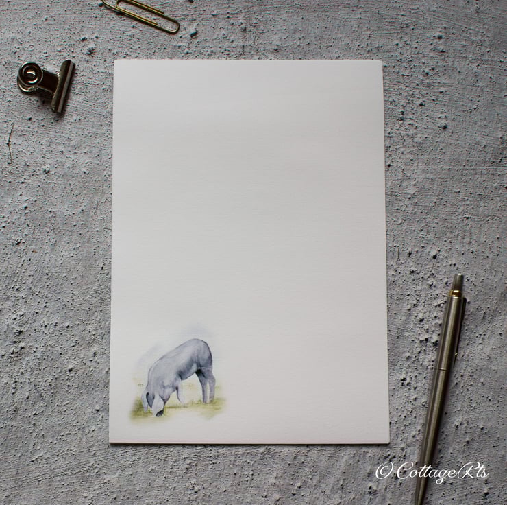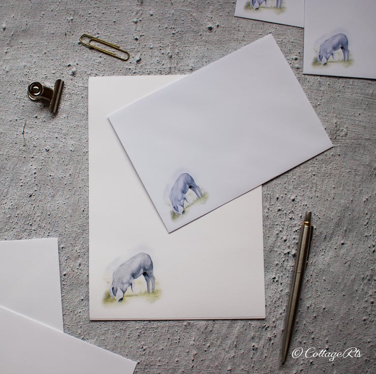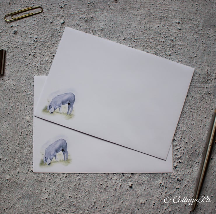 The pig design for this writing paper and envelope set was originally hand painted in watercolour by us at CottageRts.