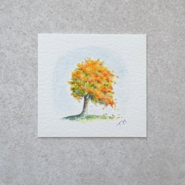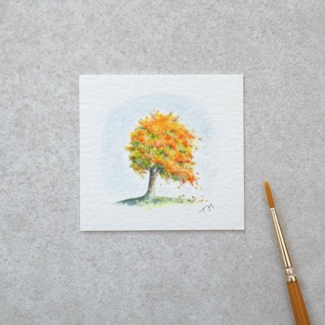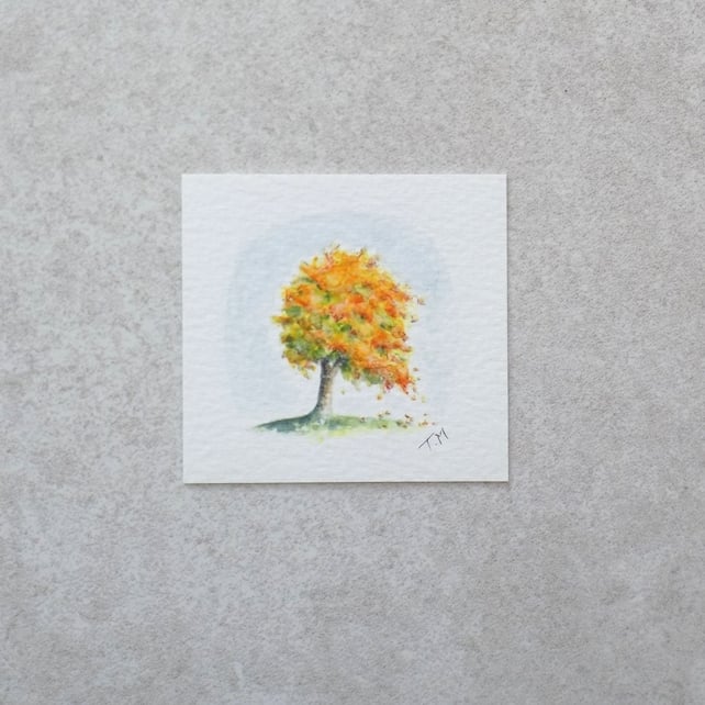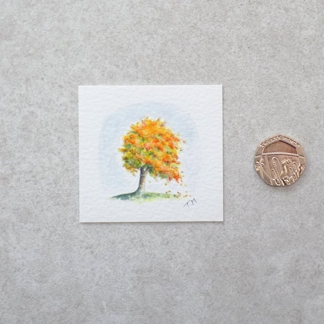 My miniature watercolour art 'Autumn Sycamore' tree has been painted on acid free 300gsm watercolour paper, has been signed on the back and comes protected in a tiny cellophane bag. These miniature artworks are lovely to collect, for a gift or for a doll's house.