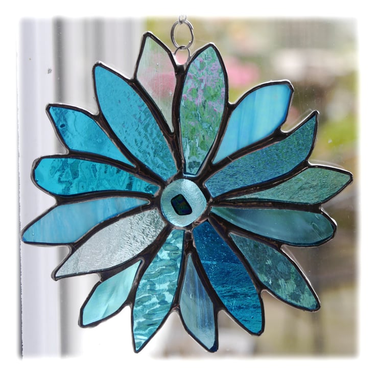 This is a aquamarine, teal and turquoise coloured version of my popular Rainbow Flower.