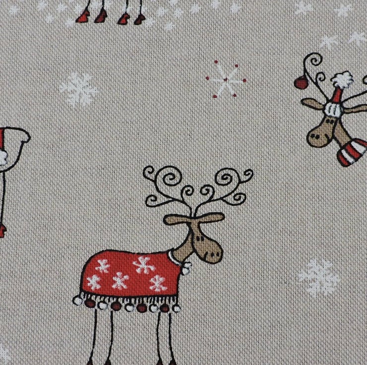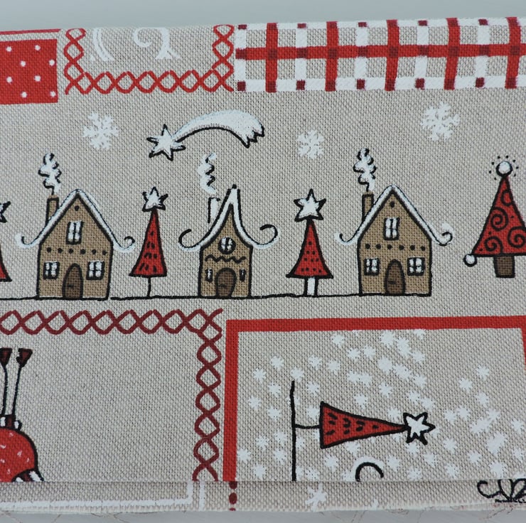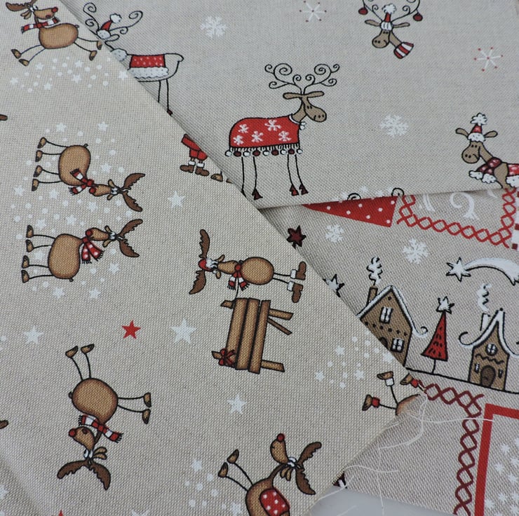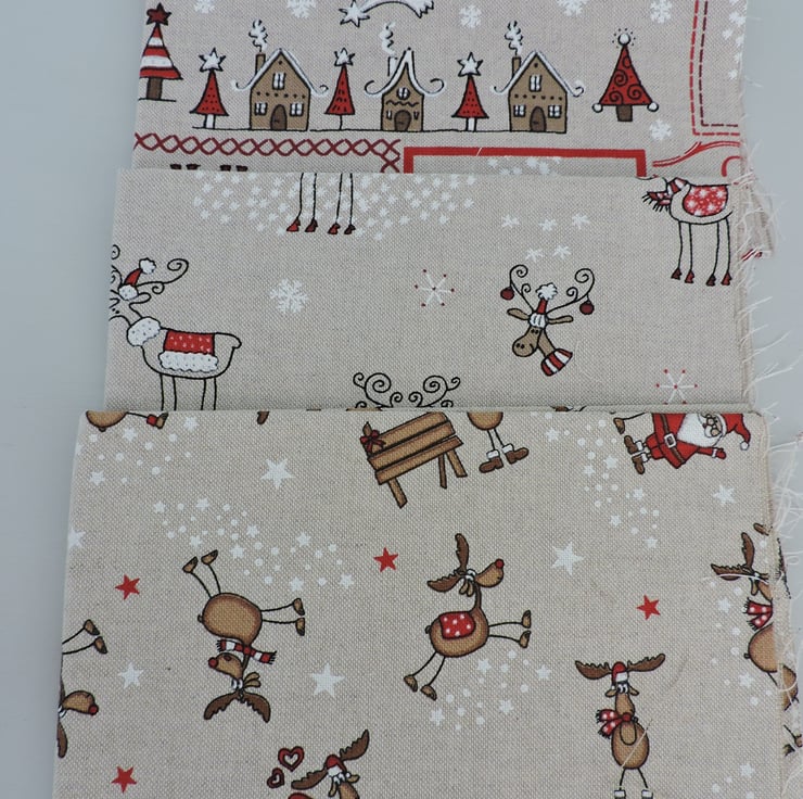 Three fat quarter pieces of Christmas fabric. Cotton duck fabric. Oatmeal, brown, red. black and white. Too much fabric in my stash so having to start to lighten the load.