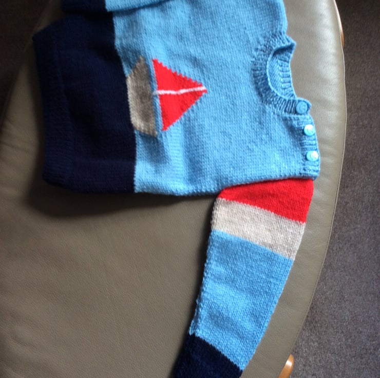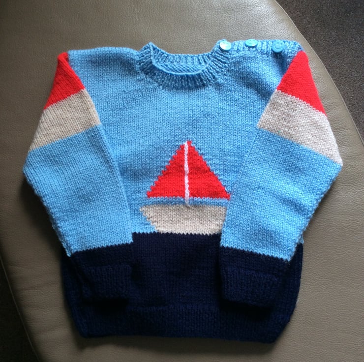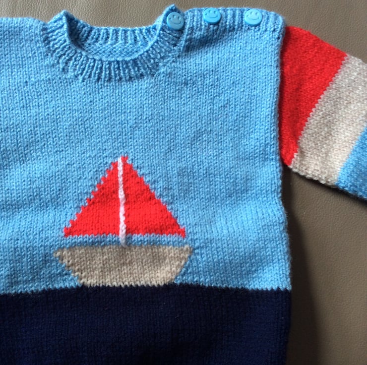 Jumper with sailing boat pattern on the front.