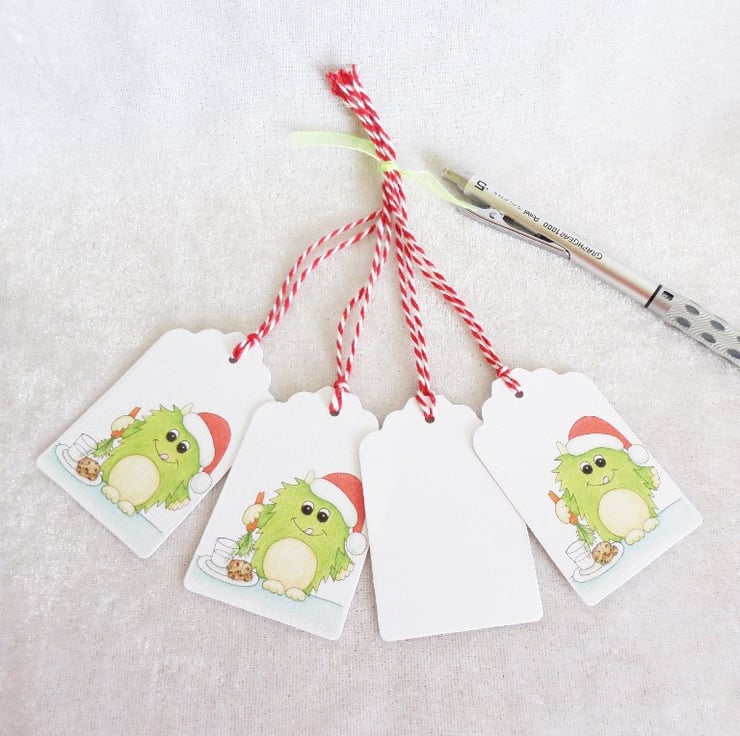These cute Christmas little monster gift tags have been designed using my own original watercolour illustration. I have designed them to match and compliment my handmade cards in the same design.