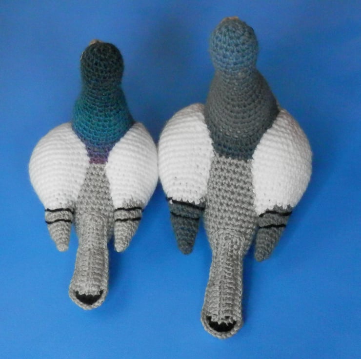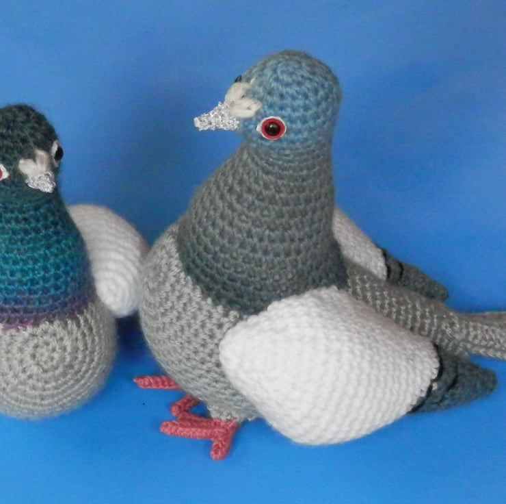 This is a PDF file in UK crochet terms and English language to make a realistic crochet pigeon in two sizes 7.75cm & 6.5cm. Aran yarn is used for the large pigeon & DK yarn for the smaller one.