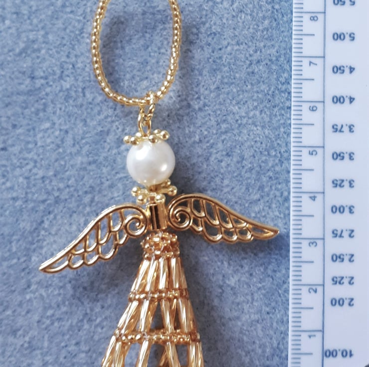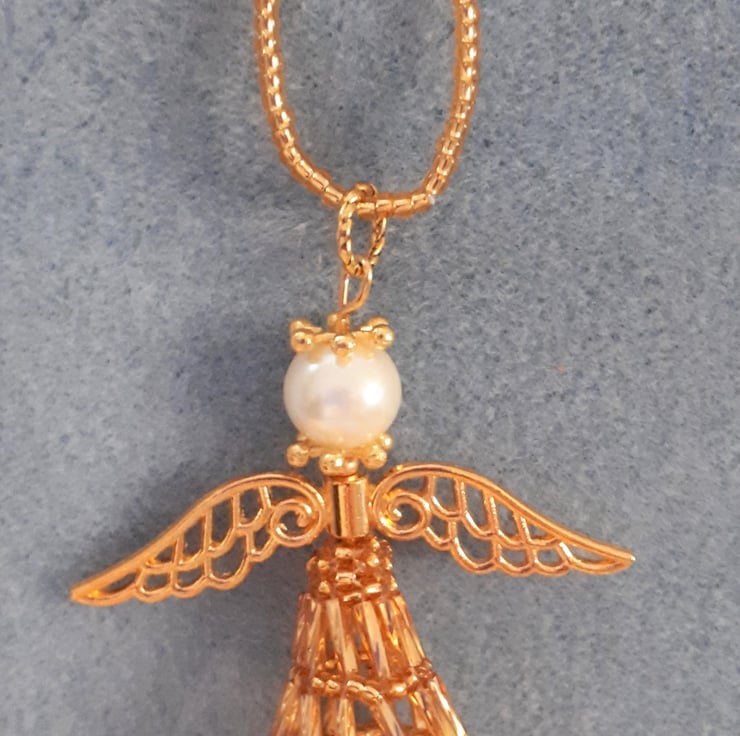 Medium sized Angel tree decoration in gold, with a beaded skirt . She is approx 2.5" / 6cm tall, excluding the hanger.