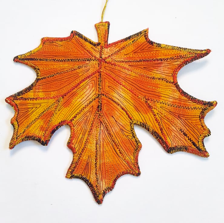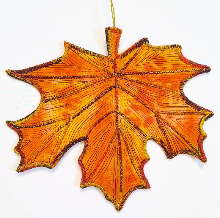 This is a handmade machine stitched fabric leaf