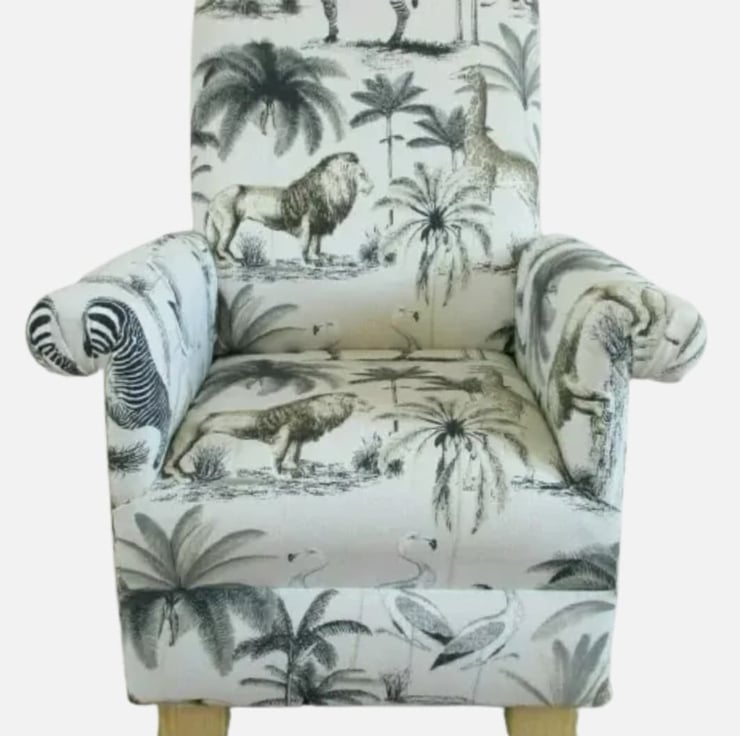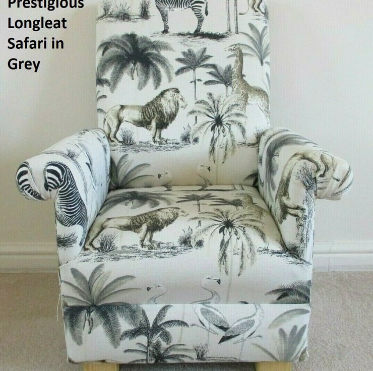 Children's Safari Animals Chair Kids Chair Prestigious Longleat Grey Fabric Lion