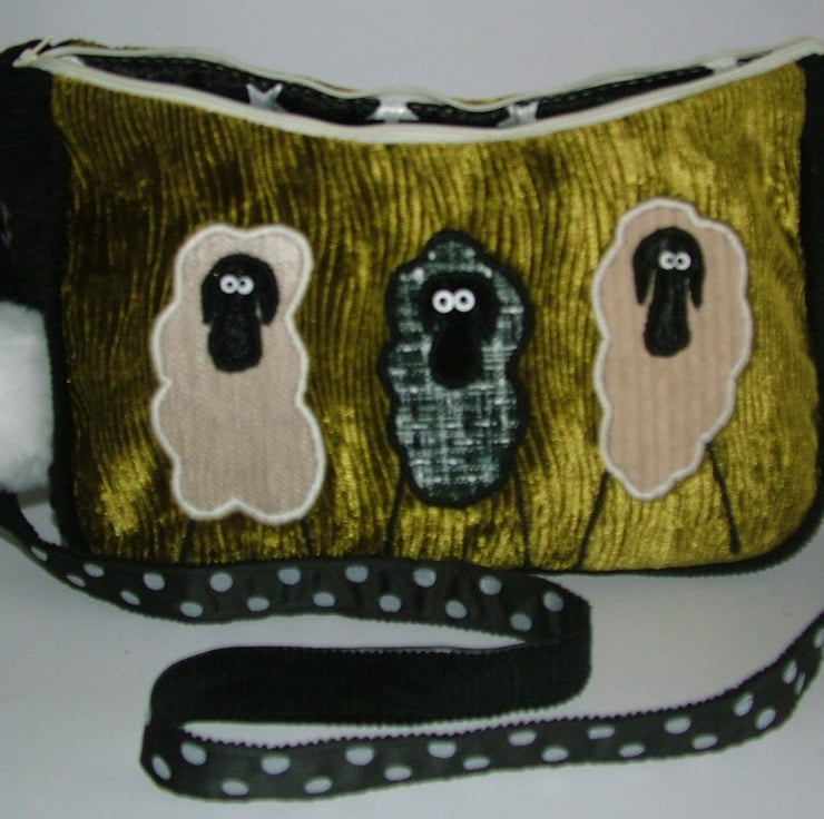 This fun little handbag feature 3 fabulous sheep front and back...