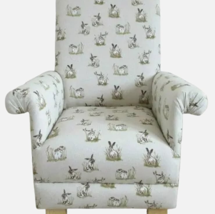 I am a professional upholsterer with over 33 years experience, and have made this sturdy little CHILD’S chair, using Vintage Hares fabric.
