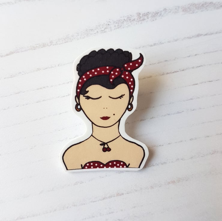 This listing is for one rockabilly lady style pin. Other pins are also available in the Retropins collection