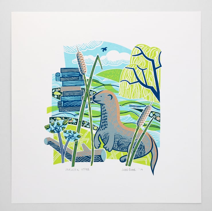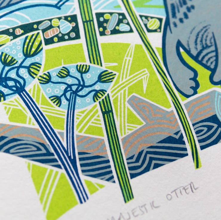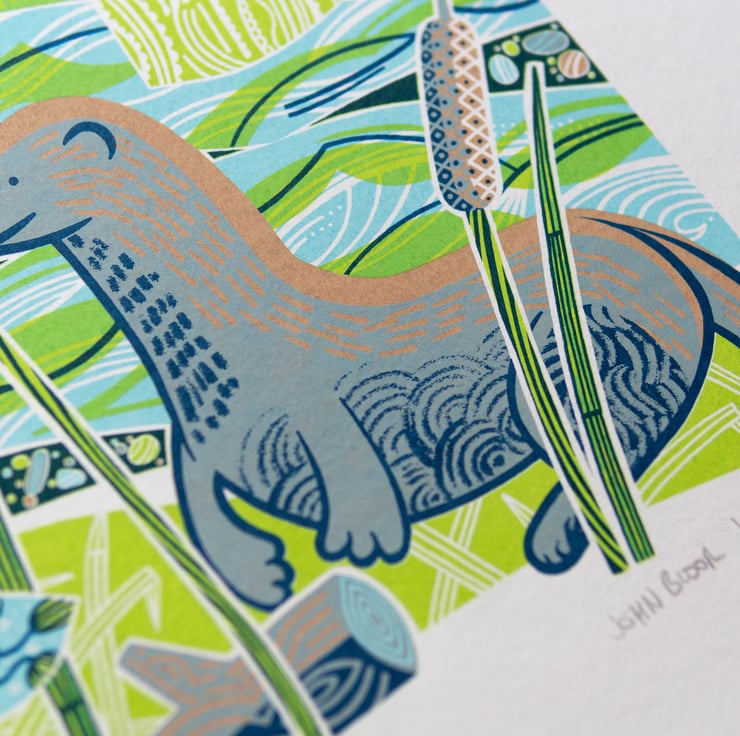 This "Majestic Otter" screen print is hand pulled (hand printed). Each one is named, signed and dated by me.