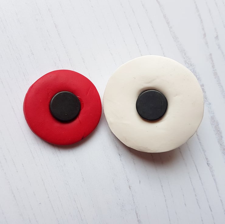 A second red festive coloured disc is also supplied, with each of the two discs having a strong magnet fixed onto the base. These can then be put together with your fabric in between, providing a safe place to keep your needle!