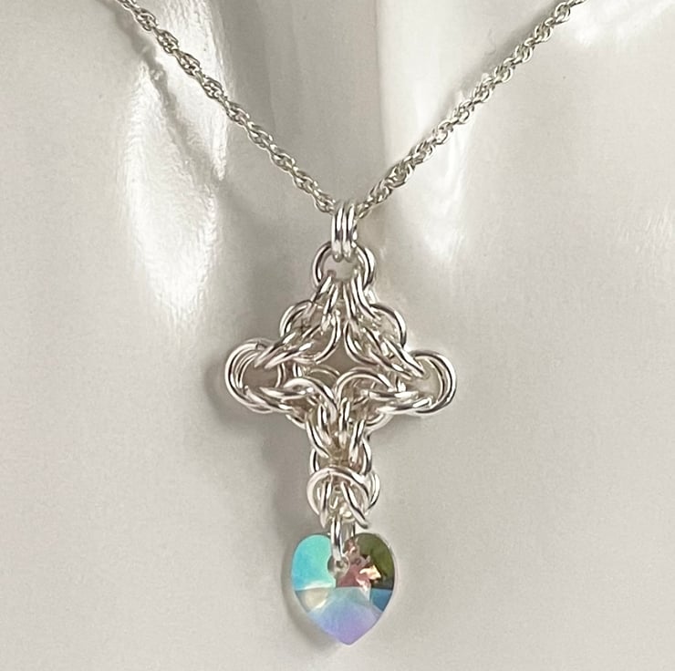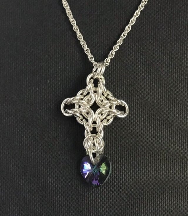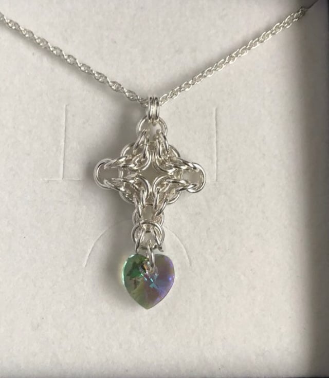 This is a Sterling Silver Celtic Cross style chainmaille pendant that comes with an 18 inch Sterling Silver chain.