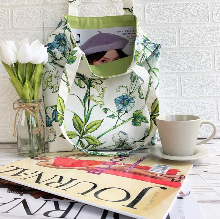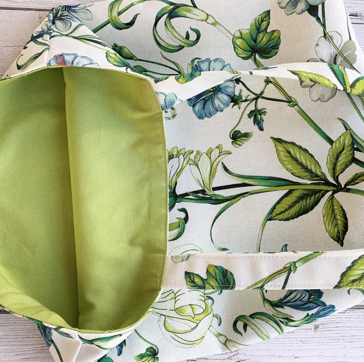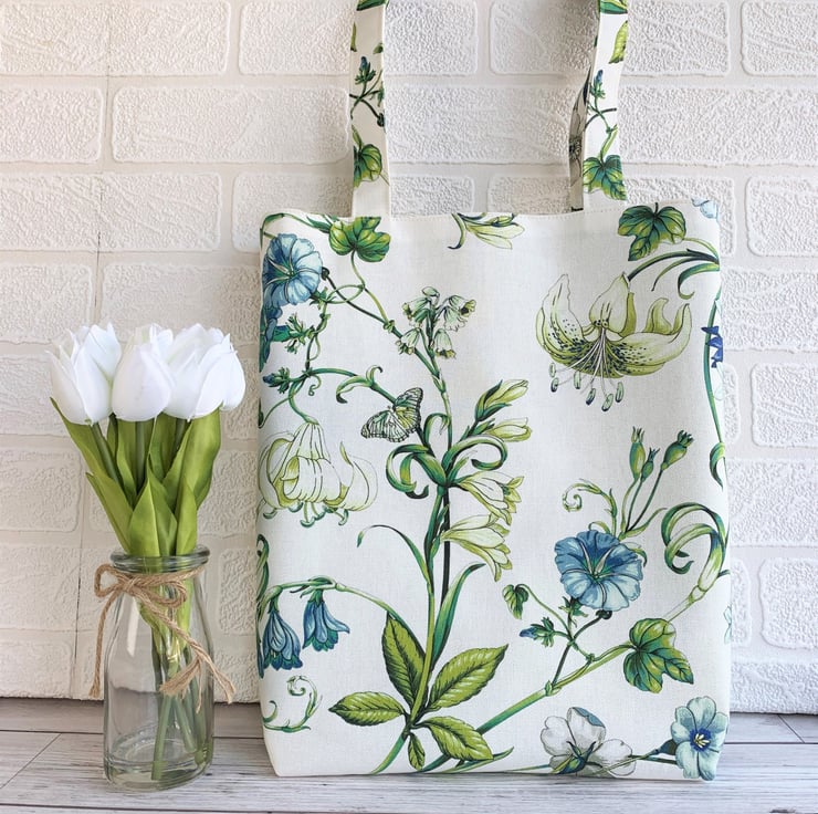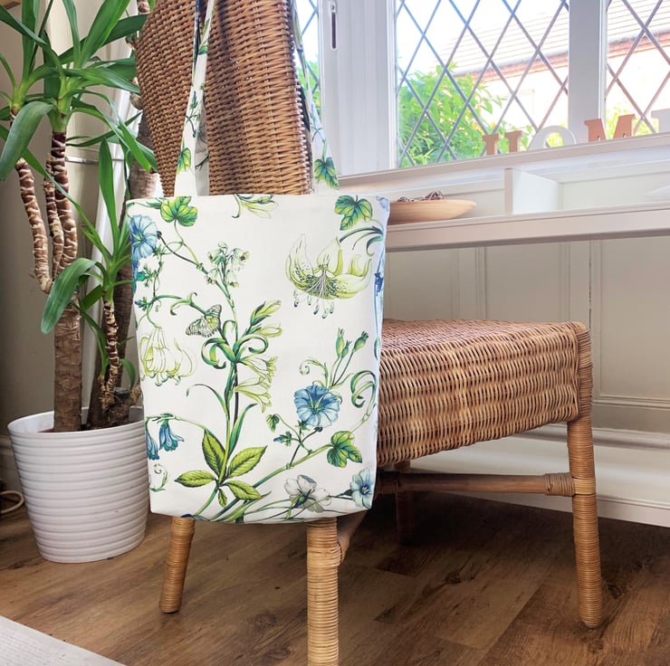 This tote bag is very versatile - perfect for use as a shopping bag but pretty enough to be used as a handbag. It can be easily folded and placed inside a handbag as an alternative to using plastic carrier bags. With its pretty fabric it would make a lovely gift, particularly for a nature-lover.