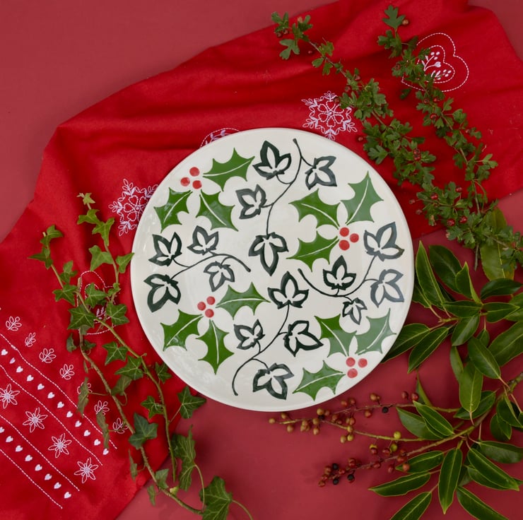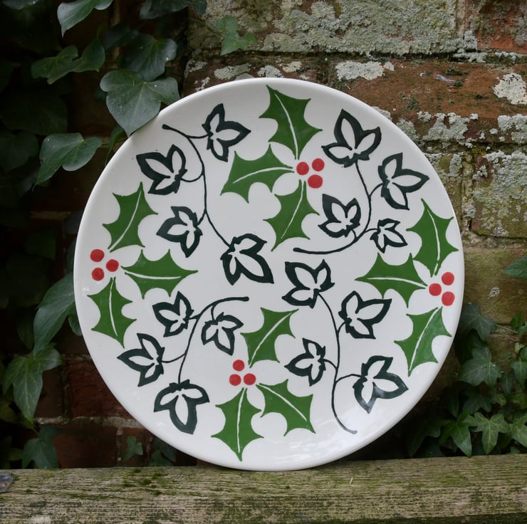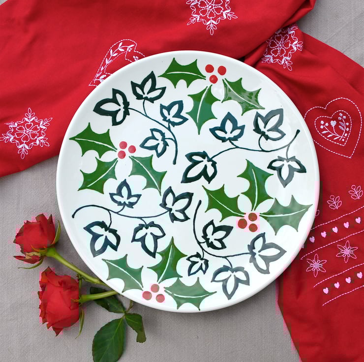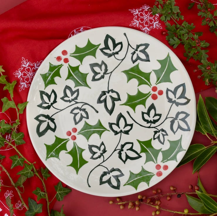 This hand painted Holly & Ivy platter would be perfect for a center piece on the Christmas table with Candles, Christmas Cake, Pudding or mince pies.