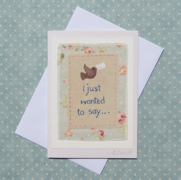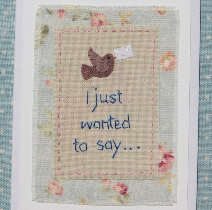 This hand-stitched miniature features a little bird winging her way to someone with a message....I have stitched the words below by hand. Perfect for a time when you cannot find the right card to send, but just wanted to send a special message to someone. Each carefully worked miniature is a gift in itself to keep, as well as a card in which to write your message.
