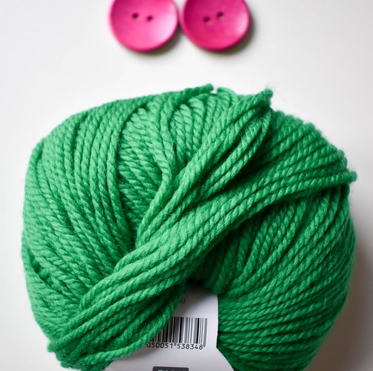 two hot pink wooden buttons chosen to compliment the yarn colour
