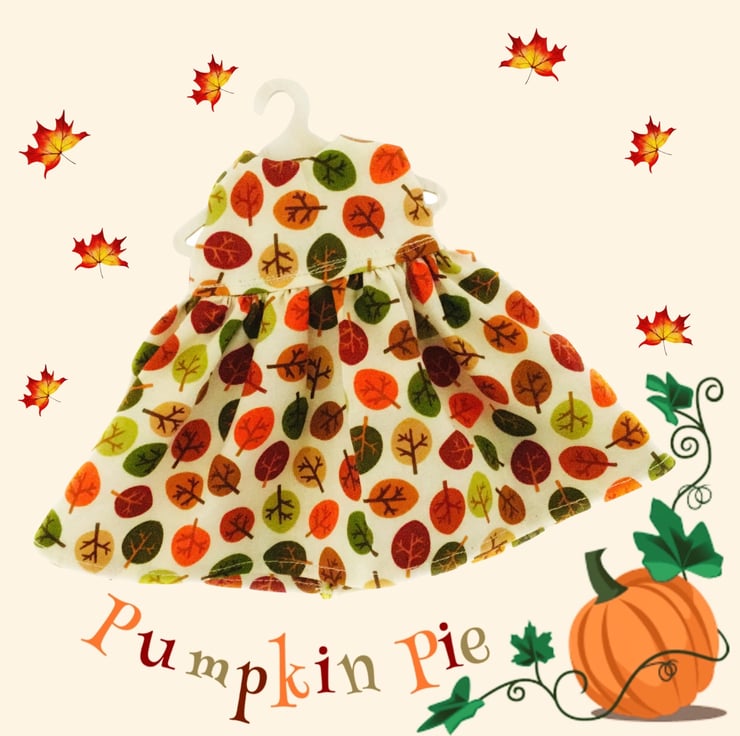 An Autumn leaf print dress to fit the Mulberry Green characters. The dress is made from best quality cotton and comes with a little wooden hanger.