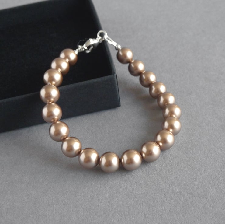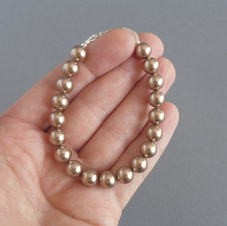 I have used golden brown pearls to create this simple bronze pearl bracelet. As weddings are the perfect opportunity to wear pearls, these soft gold pearl bracelets would make ideal bridal party gift for bridesmaids in a bronze themed wedding.
