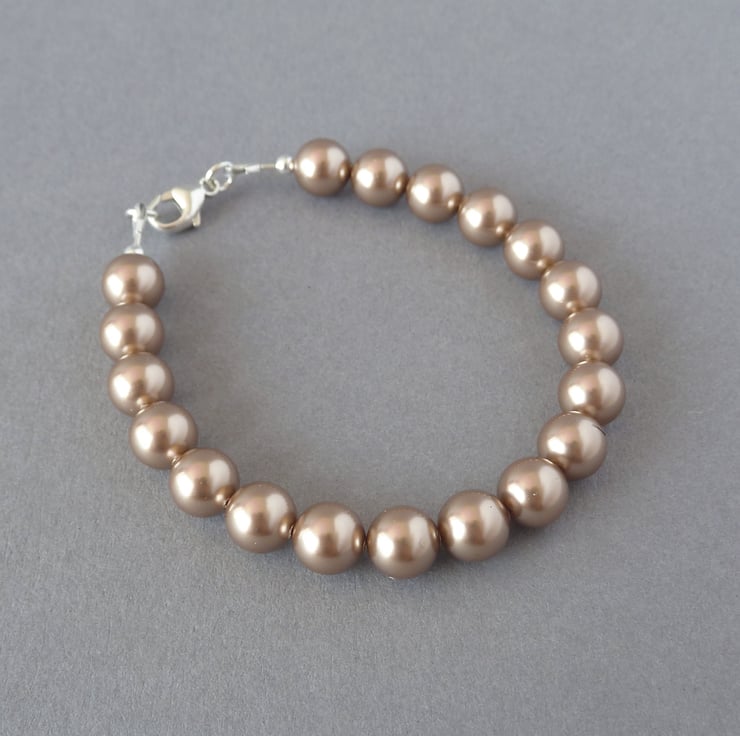 I have used golden brown pearls to create this simple bronze pearl bracelet. As weddings are the perfect opportunity to wear pearls, these soft gold pearl bracelets would make ideal bridal party gift for bridesmaids in a bronze themed wedding.