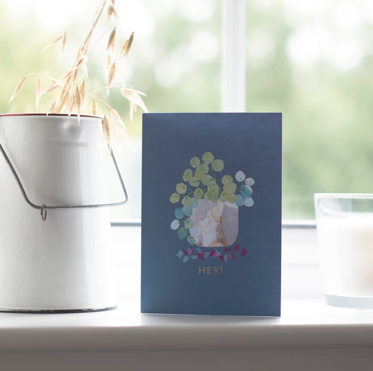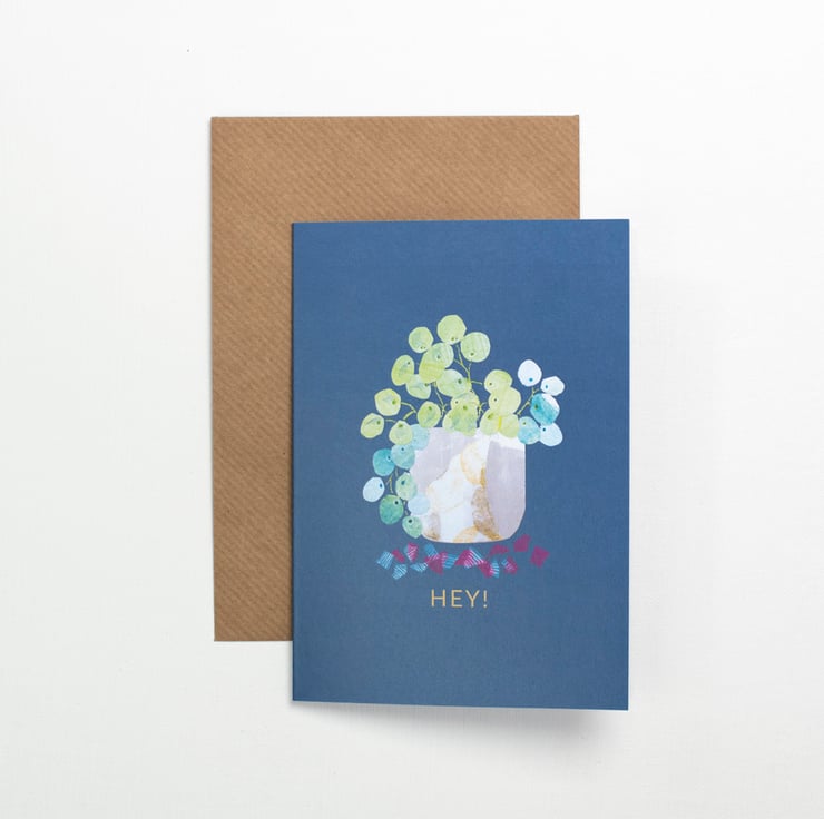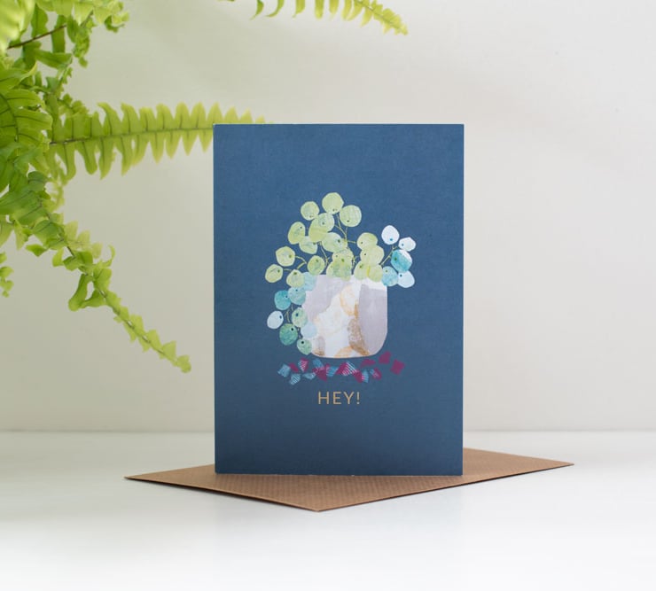 It's our connection to each other that can help to make the day seem a little brighter. Show someone you care with this botanically inspired greeting card of The Friendship Plant - or Pilea Plant.