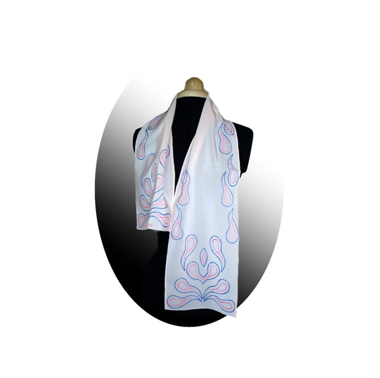 Luxury long handpainted silk scarf. Painted with an original Paisley design in three colourways.
