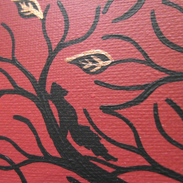Autumn Tree Canvas Art - original painting of tree silhouette with squirrels