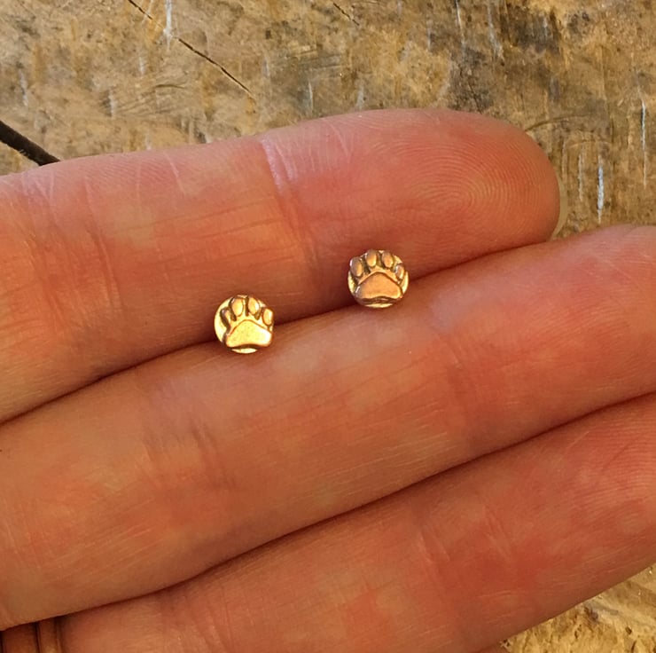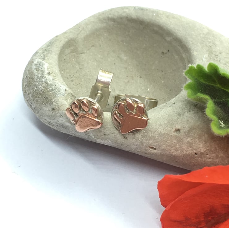 Tiny Paw Print Copper Silver Earrings, Stud, Posts, Sterling Silver