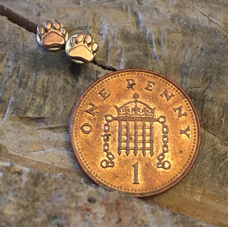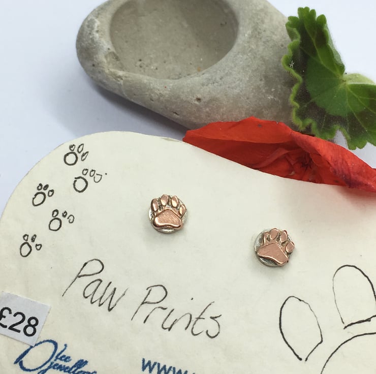 These dainty earrings with their little copper Paw Prints, are a Unique SilverHares design.